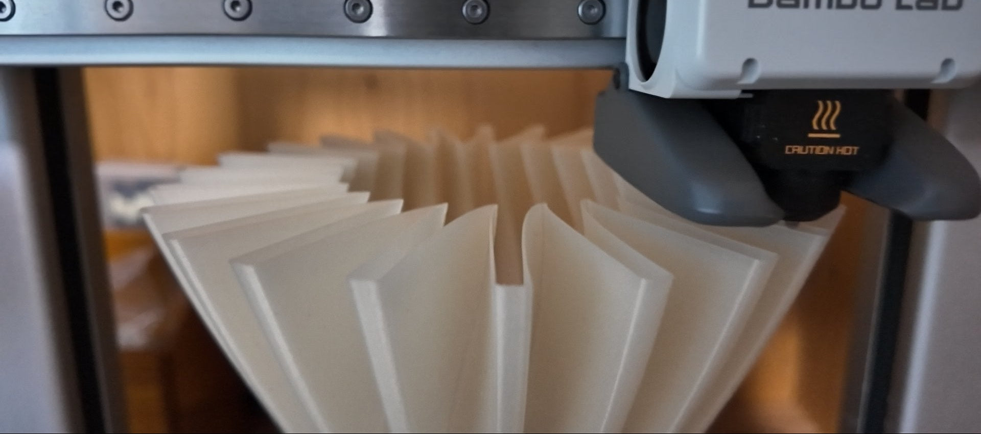 このランプのシェードは、3Dプリンターによって、0.6mmのプラスチックの糸を重ねて生まれています。わずかな凹凸や揺らぎが、そのまま表情として残ります。一つひとつ異なり、手作りのような親密さがあります。植物由来のPLA素材に、貝や麦殻など天然粉末を混ぜたフィラメントが、自然の質感を添えています。